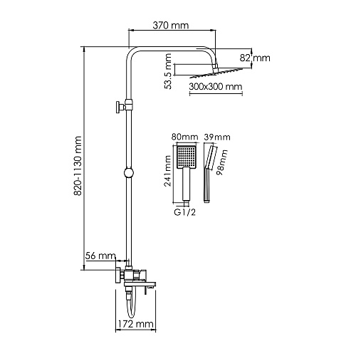 Входит в комплект: - Душевая насадка 300 x 300 мм, 196 форсунок, нержавеющая сталь; - Стойка для душа, ? 22 мм регулируемая по высоте; - Лейка 1-функциональная с системой защиты от известковых отложений; - Шланг ПВХ 1500 мм, подключение к лейке; - Смеситель для ванны с коротким изливом; - Керамический картридж 35мм, Sedal (Испания); - Встроенный пластиковый аэратор Neoperl HONEYCOMB (Германия) с регулируемым углом наклона струи; - Керамический поворотный переключатель; - Набор для монтажа. Материал: латунь, ABS-пластик, нержавеющая сталь. Хромоникелевое покрытие.