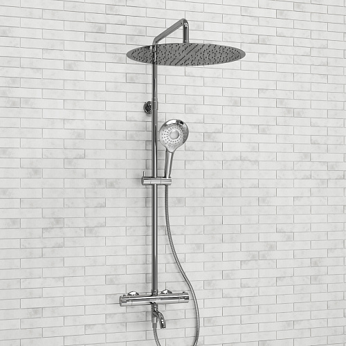 Входит в комплект: - Душевая насадка ? 400 мм, 248 форсунок, нержавеющая сталь; - Стойка для душа, ? 22 мм регулируемая по высоте; - Лейка 3-функциональная с системой защиты от известковых отложений; - Шланг ПВХ 1500 мм, подключение к лейке; - Термостатический смеситель; - Термостатический картридж Vernet (Франция); - Встроенный пластиковый аэратор Neoperl HONEYCOMB (Германия) с регулируемым углом наклона струи; - Обратный клапан Neoperl (Германия); - Керамический поворотный переключатель; - Набор для монтажа.