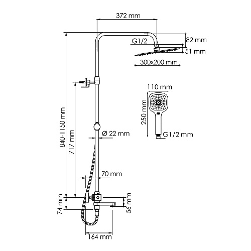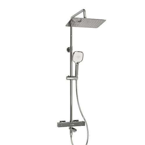 Входит в комплект: - Душевая насадка 300х200 мм, 112 форсунок, нержавеющая сталь; - Стойка для душа, ? 22 мм регулируемая по высоте; - Лейка 3-функциональная с системой защиты от известковых отложений; - Шланг металлический 1500 мм, подключение к лейке; - Термостатический смеситель; - Термостатический картридж Vernet (Франция); - Встроенный пластиковый аэратор Neoperl HONEYCOMB (Германия) с регулируемым углом наклона струи; - Обратный клапан Neoperl (Германия); - Керамический поворотный переключатель; - Набор для монтажа.