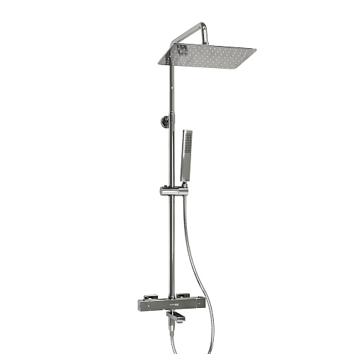 Входит в комплект: - Душевая насадка 300х200 мм, 112 форсунок, нержавеющая сталь; - Стойка для душа, ? 22 мм регулируемая по высоте; - Лейка 1-функциональная с системой защиты от известковых отложений; - Шланг металлический 1500 мм, подключение к лейке; - Термостатический смеситель; - Термостатический картридж Vernet (Франция); - Встроенный пластиковый аэратор Neoperl HONEYCOMB (Германия) с регулируемым углом наклона струи; - Обратный клапан Neoperl (Германия); - Керамический поворотный переключатель; - Набор для монтажа.