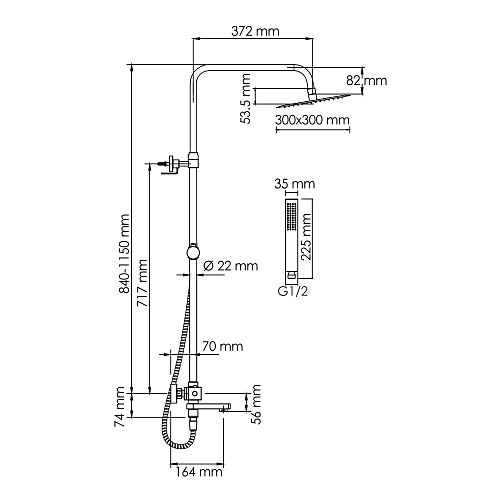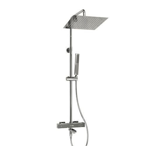Входит в комплект: - Душевая насадка 300 x 300 мм, 196 форсунок, нержавеющая сталь; - Стойка для душа, ? 22 мм регулируемая по высоте; - Лейка 1-функциональная с системой защиты от известковых отложений; - Шланг металлический 1500 мм, подключение к лейке; - Термостатический смеситель; - Термостатический картридж Vernet (Франция); - Встроенный пластиковый аэратор Neoperl HONEYCOMB (Германия) с регулируемым углом наклона струи; - Обратный клапан Neoperl (Германия); - Керамический поворотный переключатель; - Набор для монтажа.