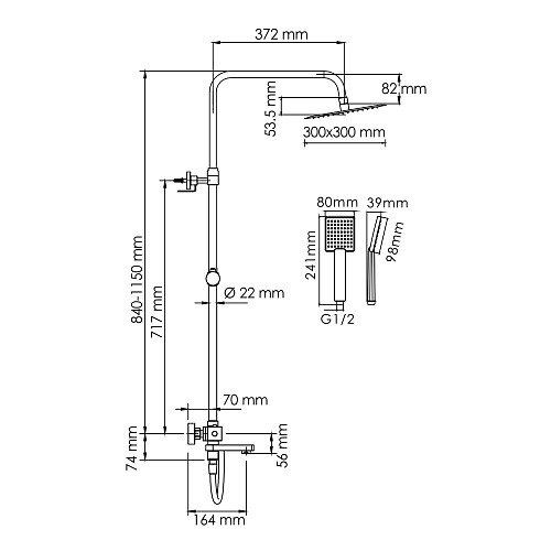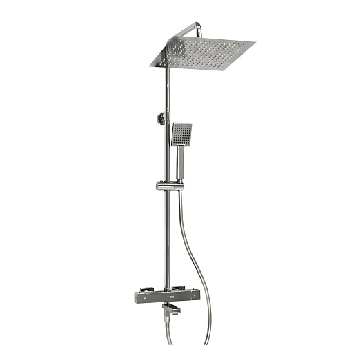 Входит в комплект: - Душевая насадка 300 x 300 мм, 196 форсунок, нержавеющая сталь; - Стойка для душа, ? 22 мм регулируемая по высоте; - Лейка 1-функциональная с системой защиты от известковых отложений; - Шланг ПВХ 1500 мм, подключение к лейке; - Термостатический смеситель; - Термостатический картридж Vernet (Франция); - Встроенный пластиковый аэратор Neoperl HONEYCOMB (Германия) с регулируемым углом наклона струи; - Обратный клапан Neoperl (Германия); - Керамический поворотный переключатель; - Набор для монтажа.