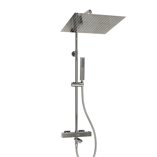 Входит в комплект: - Душевая насадка 400 x 400 мм, 234 форсунок, нержавеющая сталь; - Стойка для душа, ? 22 мм регулируемая по высоте; - Лейка 1-функциональная с системой защиты от известковых отложений; - Шланг ПВХ 1500 мм, подключение к лейке; - Термостатический смеситель; - Термостатический картридж Vernet (Франция); - Встроенный пластиковый аэратор Neoperl HONEYCOMB (Германия) с регулируемым углом наклона струи; - Обратный клапан Neoperl (Германия); - Керамический поворотный переключатель; - Набор для монтажа.