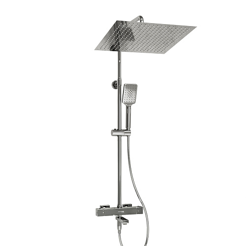 Входит в комплект: - Душевая насадка 400 x 400 мм, 234 форсунок, нержавеющая сталь; - Стойка для душа, ? 22 мм регулируемая по высоте; - Лейка 3-функциональная с системой защиты от известковых отложений; - Шланг металлический 1500 мм, подключение к лейке; - Термостатический смеситель; - Термостатический картридж Vernet (Франция); - Встроенный пластиковый аэратор Neoperl HONEYCOMB (Германия) с регулируемым углом наклона струи; - Обратный клапан Neoperl (Германия); - Керамический поворотный переключатель; - Набор для монтажа.