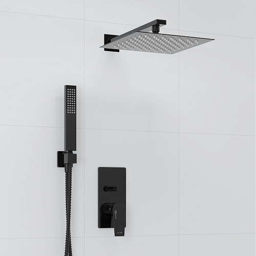 Характеристики Керамический картридж 35мм, Sedal (Испания) Автоматический кнопочный переключатель на душ Душевая насадка 250 x 250 мм, 112 форсунок, нержавеющая сталь Лейка 1-функциональная с системой защиты от известковых отложений Комплект скрытого монтажа Наружная часть смесителя Входит в комплект Смеситель для ванны и душа Glan 6661 Подключение шланга A185 Шланг для душа 1500 мм A196 Верхняя душевая насадка A199 Настенный верхний излив для душа A181 Лейка 1-функциональная A209 Материал латунь, нержавеющая сталь Покрытие PVD-покрытие черный глянец