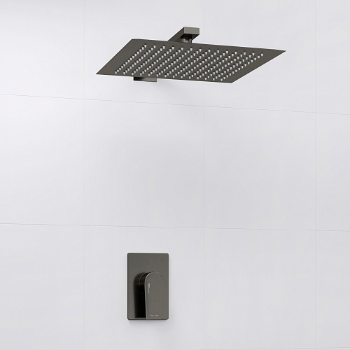 Характеристики Керамический картридж 35мм, Sedal (Испания) Душевая насадка 250 x 250 мм, 112 форсунок, нержавеющая сталь Комплект скрытого монтажа Наружная часть смесителя Входит в комплект Смеситель для душа Wiese 8451 Верхняя душевая насадка A200 Настенный верхний излив для душа A182 Материал латунь, нержавеющая сталь Покрытие PVD-покрытие "оружейная сталь"