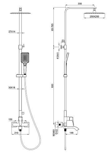Оснащение Смеситель / Душевой шланг/ Держатель для душа / Душевая штанга / Верхний душ / Душевая лейка / Эксцентрики / Монтажный комплект