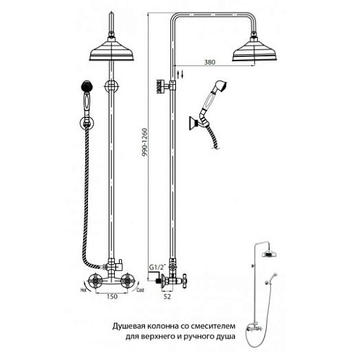 Душевая стойка Cezares RETRO CEZARES RETRO-C-CD-BLC