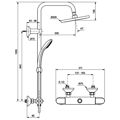 Душевая стойка Ideal Standard A6421AA IdealRain Eco, Chrome (хром)