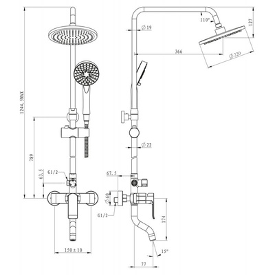 Душевая стойка с верхним и ручным душем BelBagno DIS-VSCM-CRM