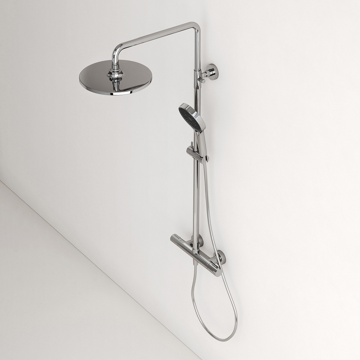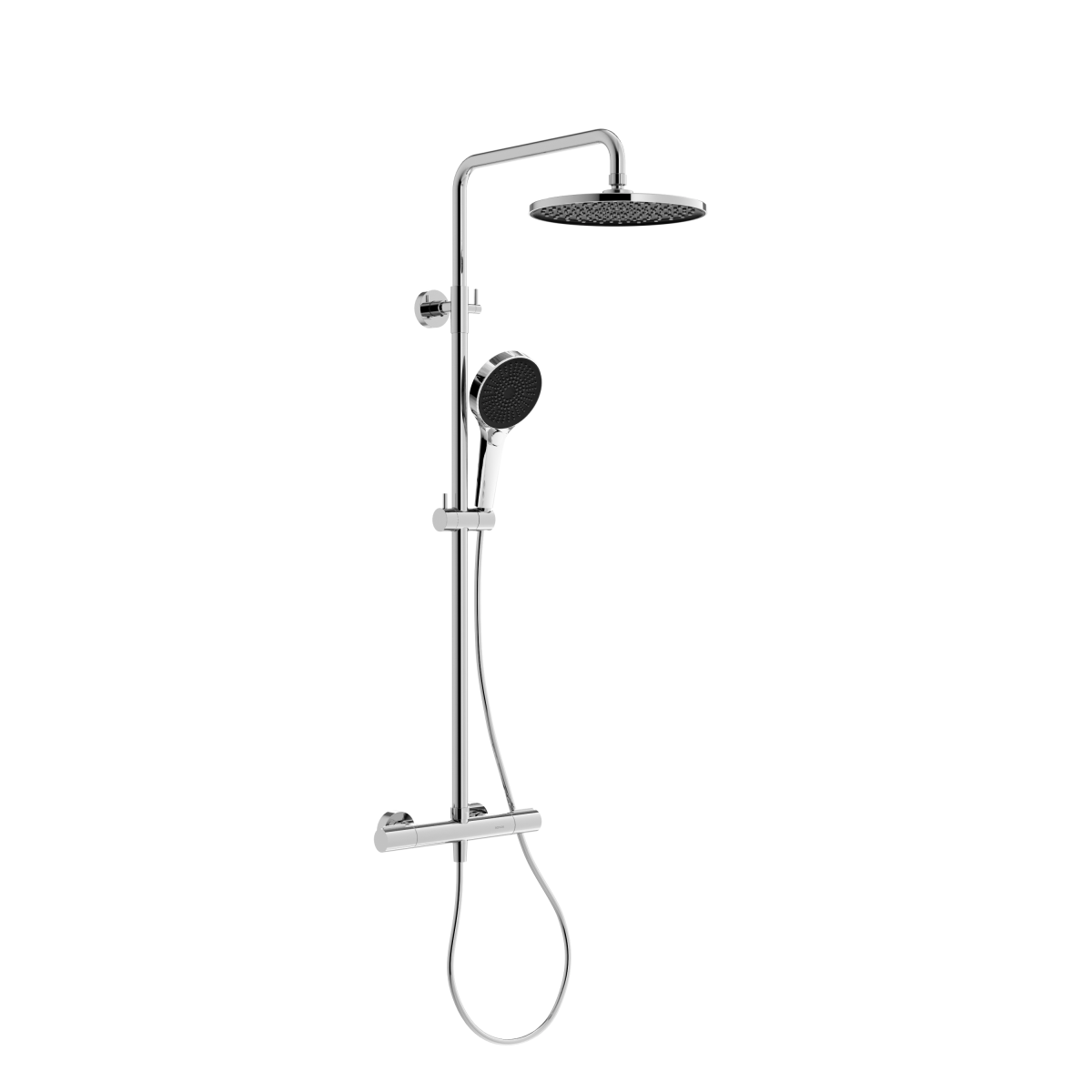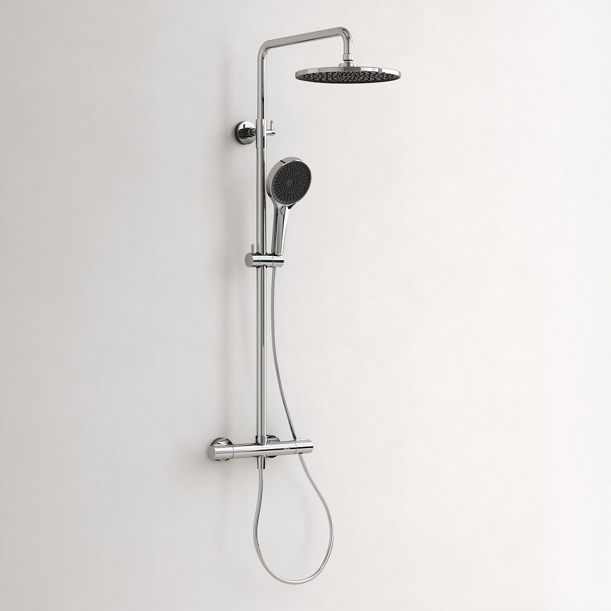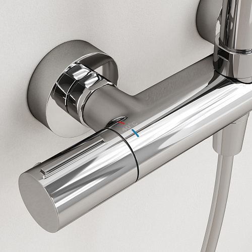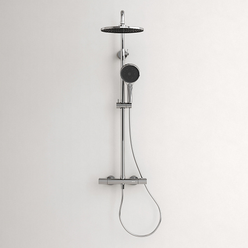 Душевая стойка со встроенным термостатом; Термостат со высокочувствительным катриджем SEDAL (Испания) мгновенно настраивает желаемую температуру воды; Предустановленный ограничитель температуры при 40°; Система защиты от ожогов при отключении холодной воды; Встроенный клапан защиты от обратного потока: Интегрированный в корпус смесителя переключатель потоков воды; Возможность регулировки штанги по высоте; Верхний душ 250 мм с возможностью настройки наклона; Ручной душ пластик, 3 режима; Гибкий шланг с системой защиты от перекручивания - 1,5 м , материал - пластик; Цвет хром глянцевый