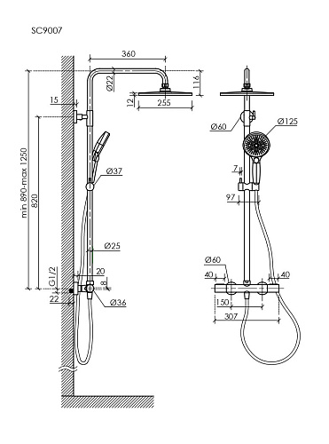 Душевая стойка со встроенным термостатом; Термостат с высокочувствительным катриджем SEDAL (Испания) мгновенно настраивает желаемую температуру воды; Предустановленный ограничитель температуры при 40°; Система защиты от ожогов при отключении холодной воды; Встроенный клапан защиты от обратного потока: Интегрированный в корпус смесителя переключатель потоков воды; Возможность регулировки штанги по высоте; Верхний душ 250 мм с возможностью настройки наклона; Ручной душ пластик, 3 режима; Гибкий шланг с системой защиты от перекручивания - 1,5 м , материал - пластик; Цвет вороненая сталь