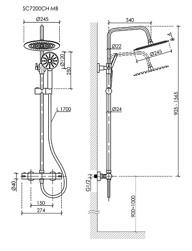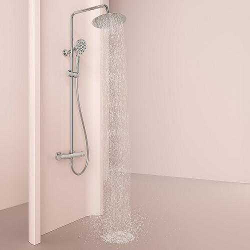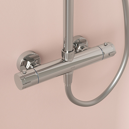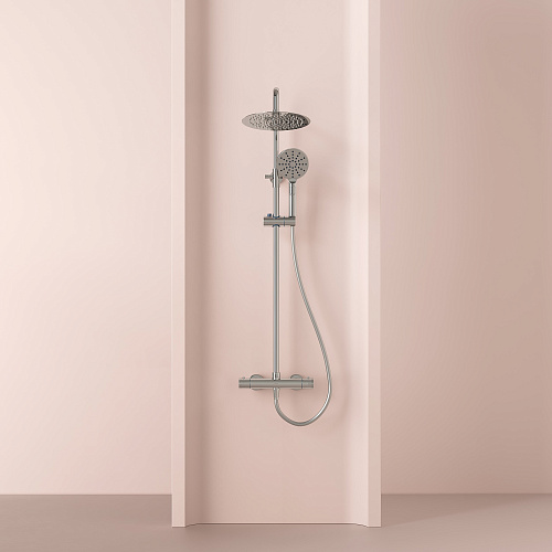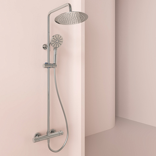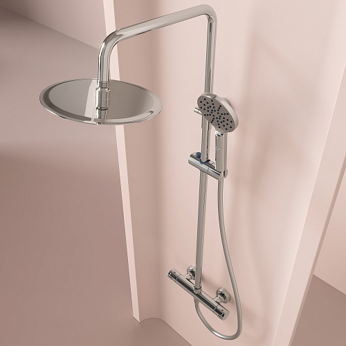 Оснащение Смеситель с термостатом, штанга, верхний и ручной душ с держателем, шланг, шланг 1700 мм
