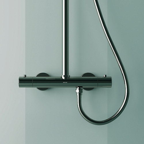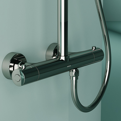 Душевая стойка Sancos Game для душа с термостатическим смесителем, верхним, ручным душем и шлангом в комплекте, цвет хром, арт. SC3002CH. Количество режимов струи: 5. Количество режимов струи верхнего душа: 1. Защита от обратного потока. Защита от перекручивания. Функция экономии расхода. Ограничение температуры. Верхний душ с изменяемым углом. Размер верхнего душа, 240 мм. Регулировка высоты. Расход воды, 6-12 л/мин.
