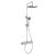 Для установки в душевую зону Регулировка штанги по высоте от 750 - 1 110 мм Смеситель с термостатом, встроенным изливом, полкой из закаленного стекла Встроенный дивертер для переключения между верхним, ручным душем и изливом Верхний душ ø250 мм с регулировкой наклона, поток воды 19 л/мин Ручной душ ø100 мм, 3 режима, поток воды 13 л/мин Шланг из ПВХ с системой защиты от перекручивания, длина 1500 мм Прочное покрытие методом электроплейтинга