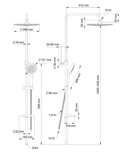 Тип товара Душевая стойка со смес., верх. и ручн.душ