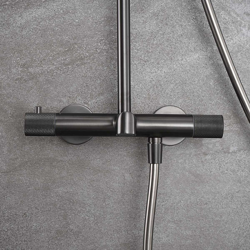 Душевая стойка Vincea VSFS-1D1TGM Desire термостатическая, вороненая сталь