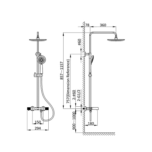 Оснащение Верхний душ, ручной душ, смеситель со встраиваемой частью, девиатор.