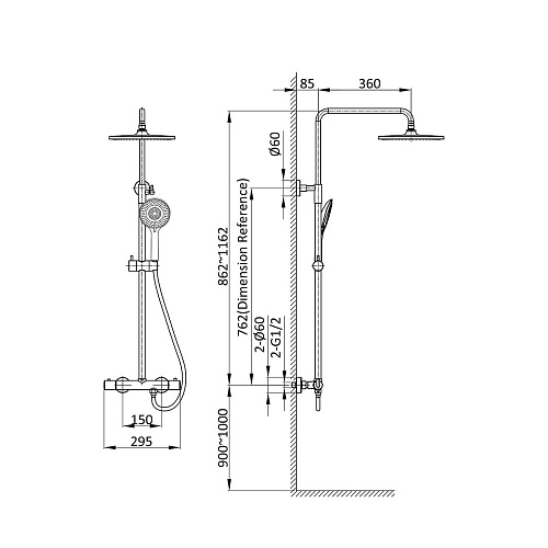 Душевая стойка Vincea VSFS-1E0TMB Esse термостатическая, черный