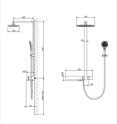 Оснащение Верхний душ, ручной душ, смеситель со встраиваемой частью, девиатор.