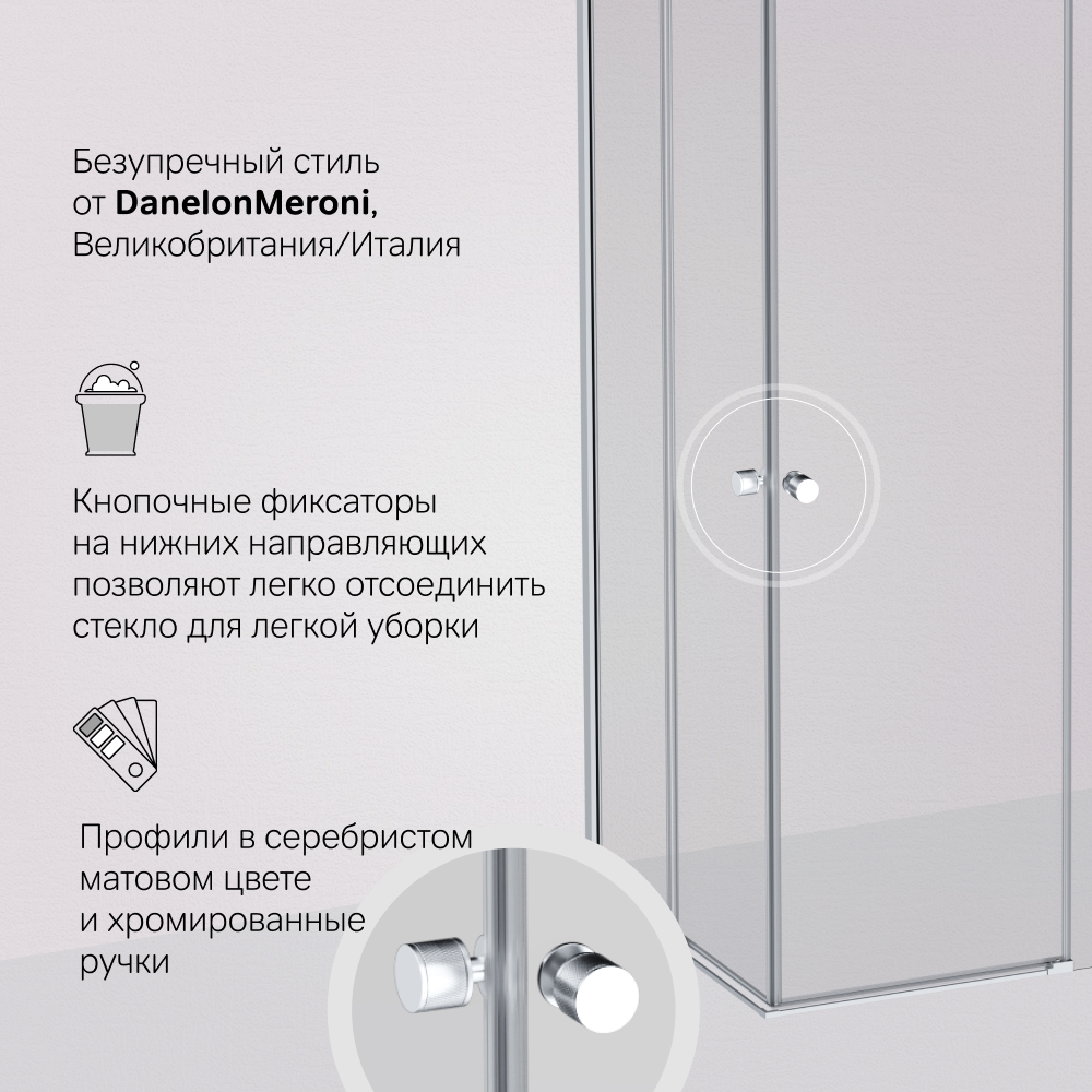 Надежные комплектующие безупречный стиль и простой монтаж – все это про душевые ограждения AM.PM X-Joy. Тонкий контур окантовки невесомый силуэт и отсутствие нижних профилей – продуманная функциональность от дизайн-бюро DanelonMeroni (Великобритания / Италия). Прочная конструкция: верхние ролики увеличенного диаметра и нижние направляющие с надежной системой захвата стекла для плавного хода двери. Кнопочные фиксаторы на нижних направляющих позволяют легко отсоединить стекло для легкой уборки. Безопасное закаленное стекло: толщина дверей – 6 мм стенок – 4 мм. Беспрецедентно стойкое покрытие: надежный алюминиевый профиль окрашен методом порошкового нанесения при высокой температуре благодаря чему краска ложится на профиль идеально ровно а также проникает в структуру самого металла. Яркий акцент в вашем интерьере: ультрамодные хромированные ручки с паттерном станут настоящим украшением ванной комнаты. Стильное и практичное решение: профили в цвете матовое серебро предотвращают появление отпечатков пальцев рук и сохраняют поверхность чистой намного дольше. Высота ограждения 1900 мм с заботой о людях высокого роста. ""