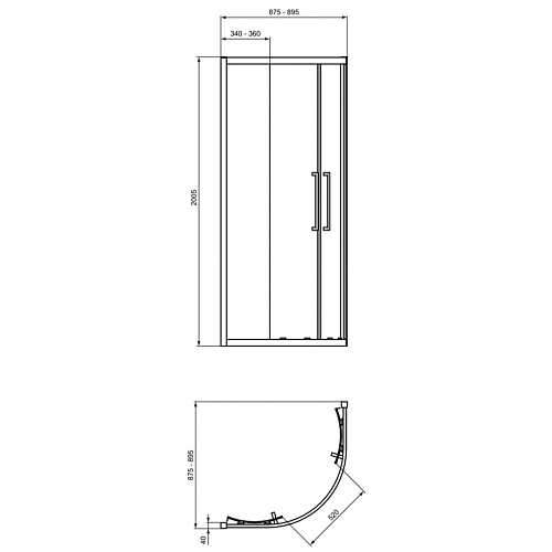 I.LIFE Quadrant Душевое ограждение 90х90 см (полный комплект), раздвижные двери. Высота 200 см, радиус 55 см, безопасное прозрачное стекло 8 мм, антиизвестковое покрытие Ideal Clean, алюминиевый профиль Bright silver (толщина 1,2 мм), стальные ручки 300х20 мм, двойные верхние ролики, система быстрого отсоединения снизу, регулировка профиля до 20 мм, скрытые винты, прозрачные уплотнители. Может комбинироваться с любым поддоном соответствующего размера, а также может устанавливаться без поддона на плиточный пол. Артикул включает обе стороны ограждения (полный комплект). Упаковано в 2 коробки (1 коробка с подвижными панелями и 1 коробка с фиксированными панелями и другиим компонентами). Реверсивная версия.