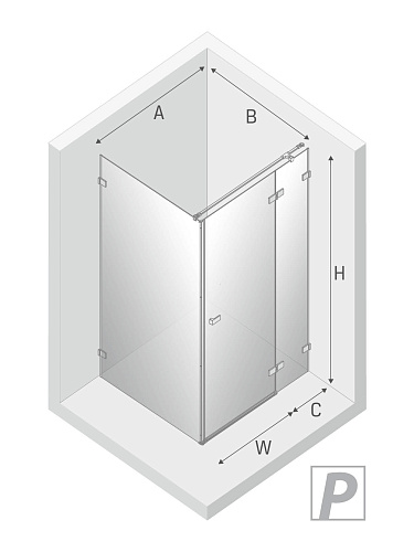 - безопасное закаленное стекло 6 мм; - защитное покрытие Active Shield; - водоотводящий желоб в комплекте; - крючок для полотенца в подарок. Технические размеры: Ширина (A): 89,2-90,2 см; Глубина (B): 69,2-70,2 см; Ширина входа (W): 53 см; Непод