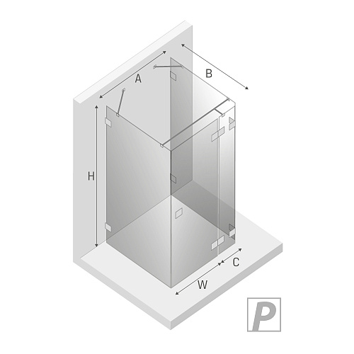 - безопасное закаленное стекло 6 мм; - защитное покрытие Active Shield; - водоотводящий желобок по нижнему краю двери; - крючок для полотенца в подарок. Технические размеры: Ширина (A): 90,8 см; Глубина (B): 88,4-89,4 см; Ширина входа (W): 53 см;