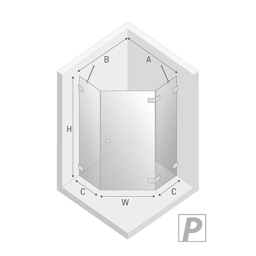 - безопасное закаленное стекло 6 мм; - защитное покрытие Active Shield; - водоотводящий желоб и уплотнитель для беспорогового монтажа в комплекте; - крючок для полотенца в подарок. Технические размеры: Ширина (A): 89,7-90,7 см; Глубина (B): 89,7-90,7 см;