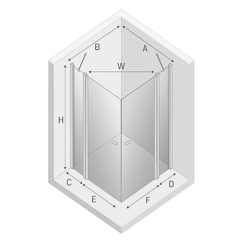 - безопасное закаленное стекло 6 мм; - защитное покрытие Active Shield; - створки секции открываются на 180°. Технические размеры: Ширина (A): 88,5-90 см; Глубина (B): 98,5-100 см; Ширина входа (W): 92 см; Неподвижная секция (С): 26,5 см; Неподв