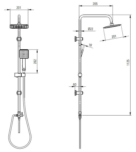 Длина душевого шланга, см 150