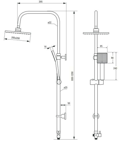 Регулируемая высота верхнего душа: да. Регулировка высоты штанги для [мм]: 800. Регулировка высоты штанги для [мм]: 1250. Добавочные свойства: регулировка наклона душевой лейки. Верхний душ - ширина [мм]: 200, длина [мм]: 200. Anti-calc: да. Количество функций: 1. Виды струи: дождевой. Количество функций лейки: 1. Виды струи: дождевой. Вид оплетки шланга: индивидуально плетеный. Тип переключателя: механический керамический. Штанга изготовлена ??из стали. Только лучшие материалы, качество которых подтверждено лабораторными испытаниями. Регулируемое расстояние между крепежными элементами, позволяющее адаптировать штангу к существующим отверстиям. Лейка с системой Anti-calc облегчает удаление известкового налета. Специальное средство, безопасное для очищаемых поверхностей.