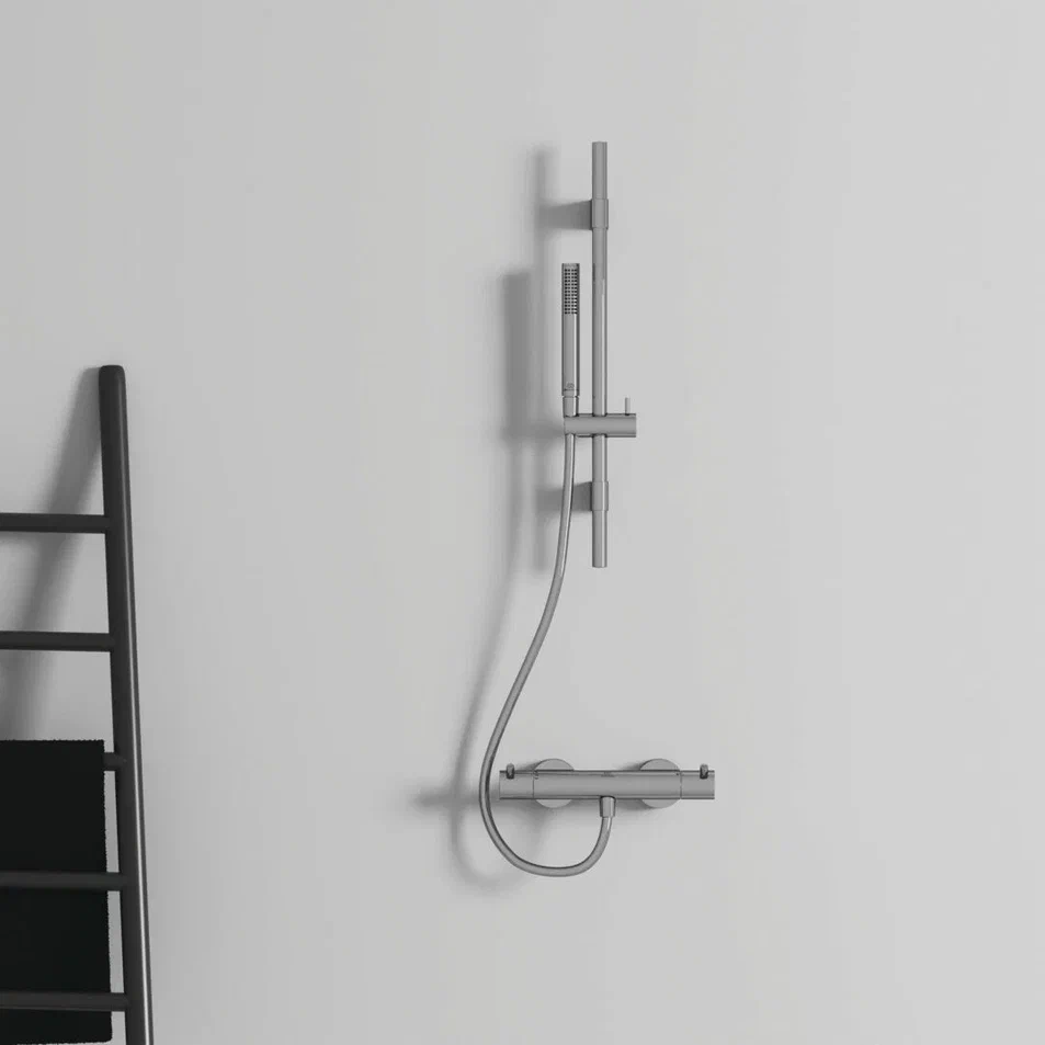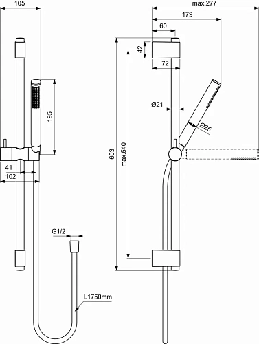 IDEALRAIN Душевой гарнитур со штангой 60 см, 1-функциональная лейка Stick, ограничение потока 8 л/мин., шланг 1750 мм с силиконовым покрытием IDEALFLEX®, штанга 60 см с регулируемыми кронштейнами, металлический слайдер, фиксатор высоты, регулировка наклона лейки