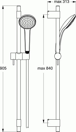 IDEALRAIN PRO M1 Душевой гарнитур: душевая лейка 100 мм, 1-функциональная, ограничение потока 8 л/мин, металлическая штанга 900 мм, металлический слайдер, гибкий шланг IDEALFLEX 1750 мм.