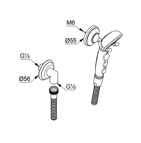 Оснащение Держатель для душа, Душевая лейка, Шланг для душа, Шланговое подключение