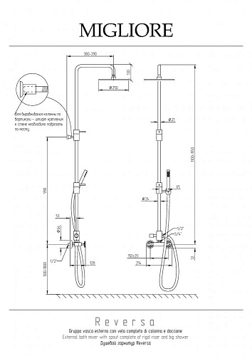 Душевой гарнитур Migliore 31848 Reversa настенный, золото