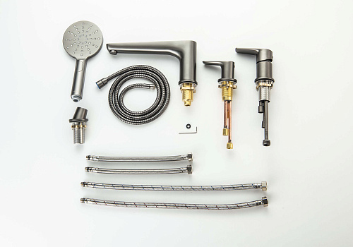 материал корпуса: латунь; ручка из цинкового сплава; картридж citec 35 мм, испания; аэратор neoperl, швейцария; дивертор - керамический картридж; 3-х функц. лейка из Пластика; душевой шланг из нерж. 1.5м; упакован в коробку, пленку из вспененного пвх