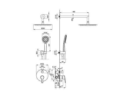 Оснащение Лейка, шланг, верхний душ, кронштейн для подключения шланга.