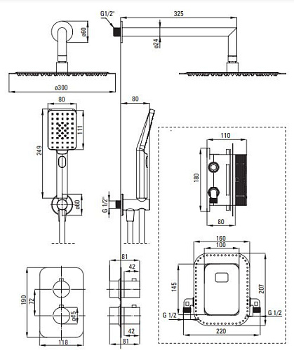 Вид смесителя: бокс скрытого монтажа, термостатический. Акустическая группа [дБ]: I (x ? 20). Вид излива: стандартный. Форма верхнего душа: круглый. Толщина [мм]: 4. 5. Диаметр [мм]: 250. Anti-calc: да. Быстрое время отклика на включение и выключение воды: да. Количество функций лейки: 3. Виды струи: дождевой, смешанный, гидромассаж. Вид оплетки шланга: не касается. Anti_twist: 1. Вид кронштейна: к шлангу с держателем лейки. Форма: круглый. Винт кронштейна: да. Скрытый монтаж: да. Удобная установка - вы можете установить BOX сейчас и выбрать внешние элементы в любое время. Уникальность и неограниченные творческие возможности. Целостность и многогранность предложения. Лучшие материалы, гарантирующие долговечность и надежность изделия. Только лучшие материалы, качество которых подтверждено лабораторными испытаниями. Инновационное и простое в уходе покрытие - брашированная сталь. Блокировка температуры 38?C для предотвращения ожогов. Регулируемый угол наклона душевой лейки. Система Anti-calc для легкого удаления известковых отложений. Ультратонкая стальная головка. Система Anti-Twist, предотвращающая скручивание шланга. Стальная душевая лейка. Предложение включает чистящее средство для арматуры всех цветов. Скрытый монтаж. обеспечивает эстетику ванной комнаты. Блокировка температуры 38?C для предотвращения ожогов. Ручной душ с антикальциевым покрытием. 3-х функциональный ручной душ. Прочные наконечники шлангов из латуни.