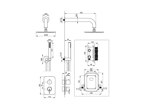 Вид смесителя: бокс скрытого монтажа, смешивающий. Акустическая группа [дБ]: I (x ? 20). Форма верхнего душа: круглый. Толщина [мм]: 8. 2. Диаметр [мм]: 250. Anti-calc: да. Количество функций: 1. Виды струи: дождевой. Количество функций лейки: 1. Добавочные свойства: cool-out. Вид оплетки шланга: не касается. Материал оплетки: PVC. Anti_twist: 1. Вид кронштейна: к шлангу с держателем лейки. Форма: круглый. Винт кронштейна: да. Скрытый монтаж: да. Удобная установка - вы можете установить BOX сейчас и выбрать внешние элементы в любое время. Уникальность и неограниченные творческие возможности. Целостность и многогранность предложения. Лучшие материалы, гарантирующие долговечность и надежность изделия. Только лучшие материалы, качество которых подтверждено лабораторными испытаниями. Скрытый монтаж обеспечивает эстетику ванной комнаты. Регулируемый угол наклона душевой лейки. Благородные формы и вечная простота. Инновационное и простое в уходе покрытие - брашированное золото. Система Anti-calc для легкого удаления известковых отложений. Душевая лейка Cool-out, которая не нагревается. Система Anti-Twist, предотвращающая скручивание шланга. Прочные наконечники шлангов из латуни. Ручной душ с антикальциевым покрытием. Специальное средство, безопасное для очищаемых поверхностей. 3-функциональный переключатель для душа, с возможностью блокировки на 2 функции.