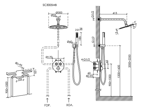 Душевой комплект Sancos Link встраиваемый, c термостатическим смесителем, верхним, ручным душем и шлангом в комплекте, цвет черный матовый, арт. SC3005MB. Количество режимов струи: 1. Количество режимов струи верхнего душа: 1. Защита от обратного потока. Защита от перекручивания. Функция экономии расхода. Ограничение температуры. Верхний душ с изменяемым углом. Размер верхнего душа, 300 мм. Расход воды, 6-12 л/мин.