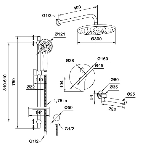 Душевой комплект Swedbe Platta 5542G1 купить по доступной цене