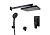 Оснащение 1. Смеситель для ванны (внешняя и скрытая часть) 2. Душевой набор 3. Верхний душ настенный 4. Шланговое подсоединение