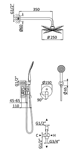 Тип товара Душевой комплект встраиваемый