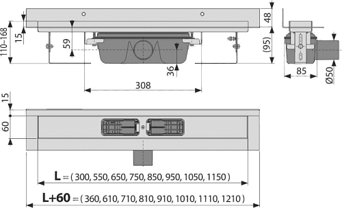 Материал дренажного канала: нержавеющая сталь AISI 304, DIN 304, SN 17240