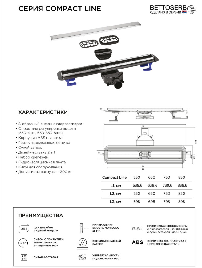 Душевой лоток Bettoserb Compact Line 13702512BM
