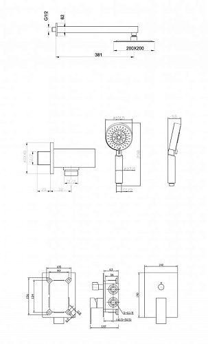 ANCONA Душевой набор (Встр.смесит.для душа с переключ. на два выхода, верхн.душ 25см, ручной душ со шлангом, штуцером и держ.) хром, ANCONA-DSET-CRM