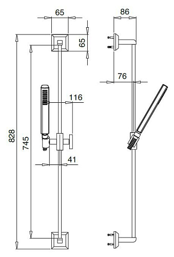 Оснащение: ручной душ, шланг для душа, держатель душа