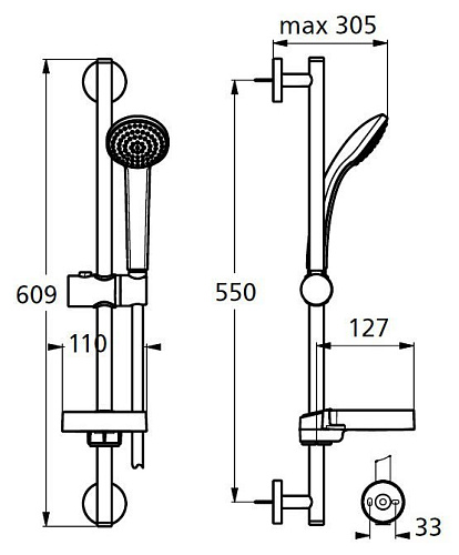 IDEALRAIN SOFT S1 Душевой гарнитур, состоящий из 1-функциональной лейки 80 мм, ограничение потока 8 л/мин, штанги 600 мм 21 мм с пластиковым слайдером, металлического шланга 1750 мм, прозрачной пластиковой мыльницы.