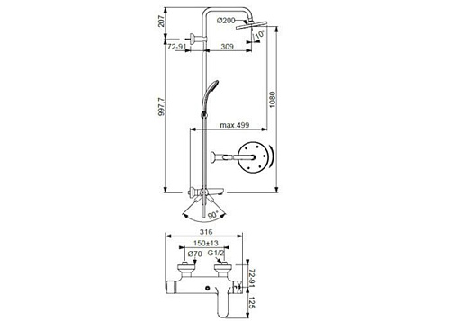 Душевая система Ideal Standard B1097AA Idealrain Eco со смесителем для ванны/душа, Chrome (хром)